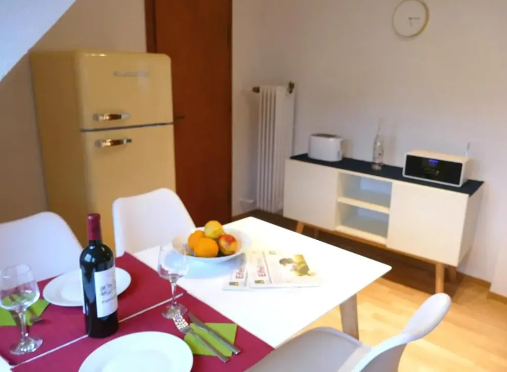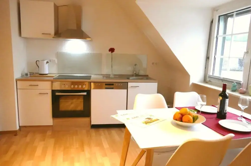 Sehr ästhetisch und geschmackvolle Ausstattung, komfortabel und hochwertig. Es wird eine großzügige Ausstattung an Getränken wie Säften, Kaffee&Milch und regionale Weine/Sekt zur Verfügung gestellt. Das ist ein wirklicher Service. Alles in allem einfach sehr liebevoll, man kann sich wirklich sehr wohlfühlen!